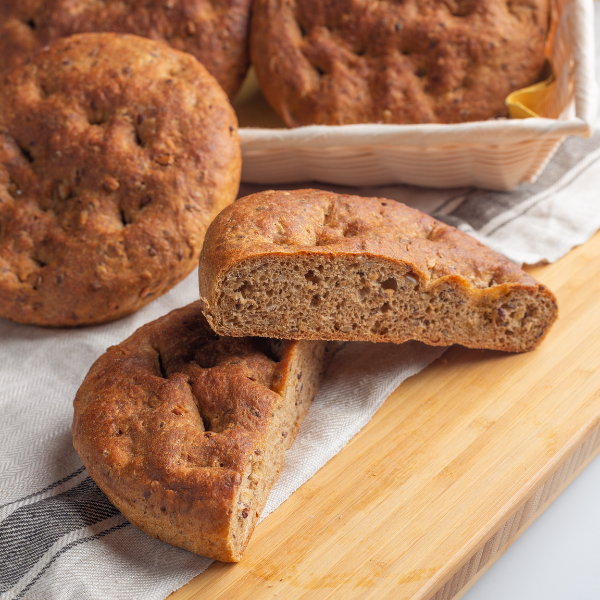 Miscela per pane e panini al grano tenero integrale, con fiocchi e granelle di cereali e semi vari